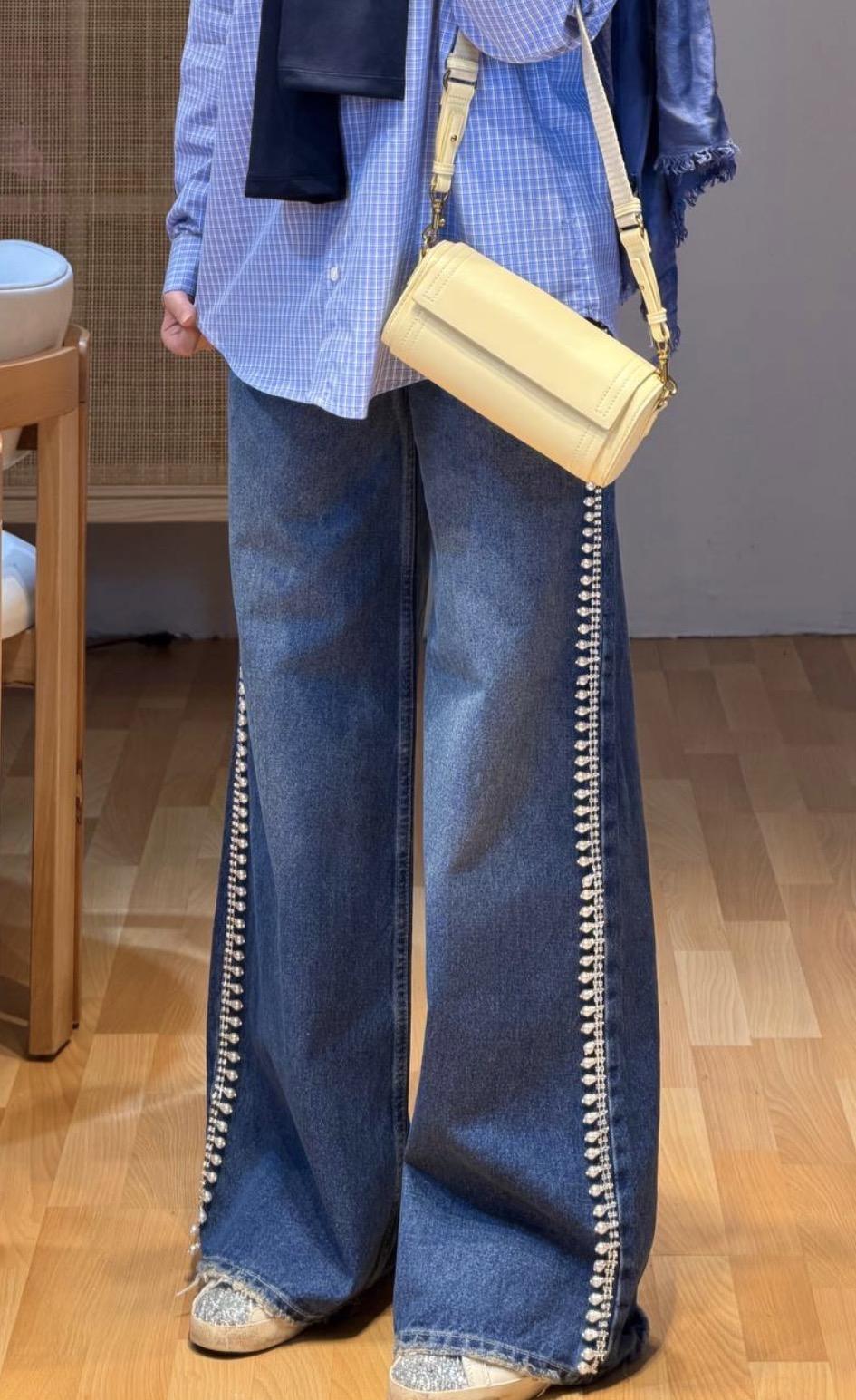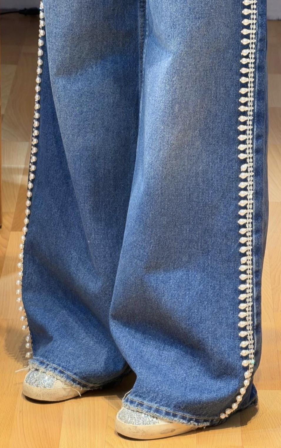 İnci Detaylı Denim Pantolon