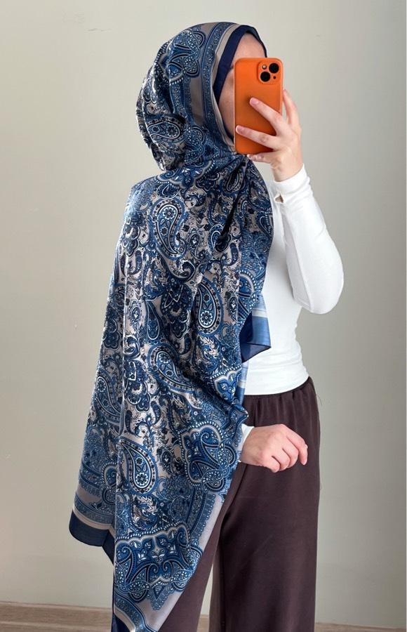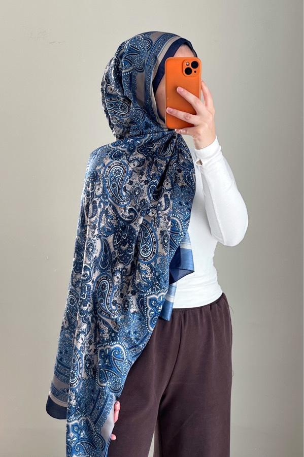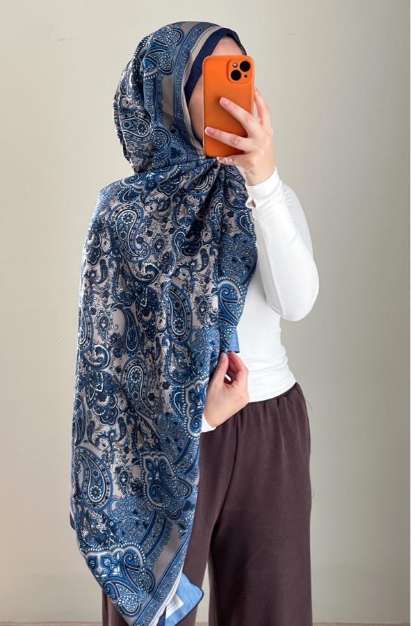 Pamuklu Etnik Desen Şal-Mavi